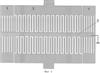 Устройство работает следующим образом. Значение относительной полосы пропускания фильтра f= f/f0 ( f – полоса пропускания, f0 – средняя частота полосы пропускания фильтра) определяется отношением ширины области связи к периоду ВШП 2 G/L (Фиг.1). Чем меньше значение G/L, тем сильнее связь между симметричной и антисимметричной модами резонатора и тем шире полоса пропускания фильтра. Зависимость полосы пропускания фильтра от G/L иллюстрируется фиг.1-6: на фиг.1, 3, 5 представлены топологии резонаторов, а на фиг.2, 4, 6 – соответствующие им амплитудно-частотные характеристики (АЧХ), где добротность двухмодового резонатора с поперечными связями Q связана с относительной полосой пропускания фильтра f обратно пропорциональной зависимостью: f=1/Q. Для увеличения полосы пропускания фильтра необходимо уменьшать G, однако значение G/L (0,5÷0,6) является предельным. Реализовать резонаторы с G/L<0,5 технологически сложно, а технический эффект при этом минимален, что видно из сравнения фиг.3-4 и фиг.5-6. На фиг.3-4 значение G/L=1,15; относительная полоса пропускания фильтра 0,094%. На фиг.5-6 значение G/L=0,6 (вдвое меньше, чем в предыдущем случае), а относительная полоса пропускания фильтра 0,11% (увеличение лишь на 17%). Таким образом, максимальное значение относительной полосы пропускания в прототипе – (0,10-0,11)%.