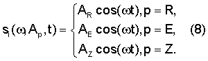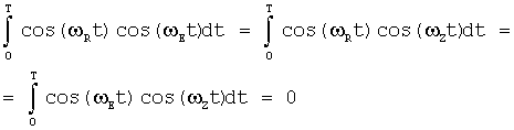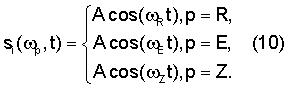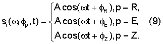 В случае использования частотной модуляции генерируют три ортогональных несущих колебания: cos( Et), cos( Zt) или cos( Rt) таких, что