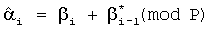На приемной стороне по известному алгоритму осуществляется восстановление исходной двоичной информационной последовательности по принятым кодовым комбинациям из n+k бит: для каждой кодовой комбинации формируют корректирующий символ для выбранной комбинации из k информационных бит путем сложения по mod P символа i, соответствующего принятой комбинации контрольных бит, с сопряженным символом , соответствующим комбинации контрольных бит предыдущей кодовой комбинации сообщения , где .