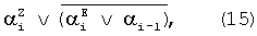 результат логического суммирования (13) подвергают операции отрицания
