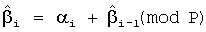К каждой такой группе информационных бит добавляется по k контрольных (корректирующих или избыточных) бит, комбинацию которых определяют в зависимости от комбинации n информационных бит: k контрольных бит выбирают в соответствии с символом i, определяемым путем сложения по модулю P=2k символа i, соответствующего комбинации из k выбранных информационных бит, с символом i-1, соответствующим комбинации из k контрольных бит предыдущей кодовой комбинации из n+k бит сообщения i= i-1+ i (mod P).