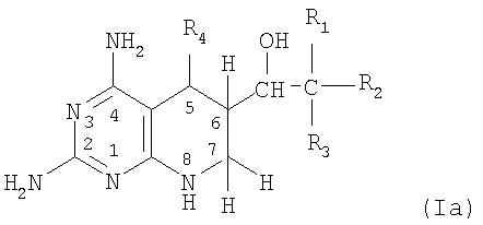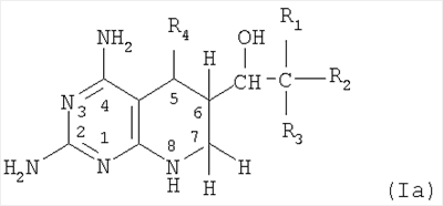 В особенно предпочтительном воплощении соединений формулы (Ia) R1 и R4 (Ia) представляют собой водород, R2 представляет собой метил и R3 представляет собой гидроксил. Соединение, которое предпочтительно применяют в настоящем изобретении, представляет собой 2,4-диамино-5,6,7,8-тетрагидро-6-(L-эритро-1,2-дигидроксипропил)-птеридин.