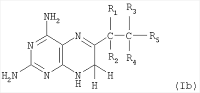 В другом предпочтительном воплощении изобретение относится к применению 2,4-диамино-замещенных производных птеридина формулы (Ib)
