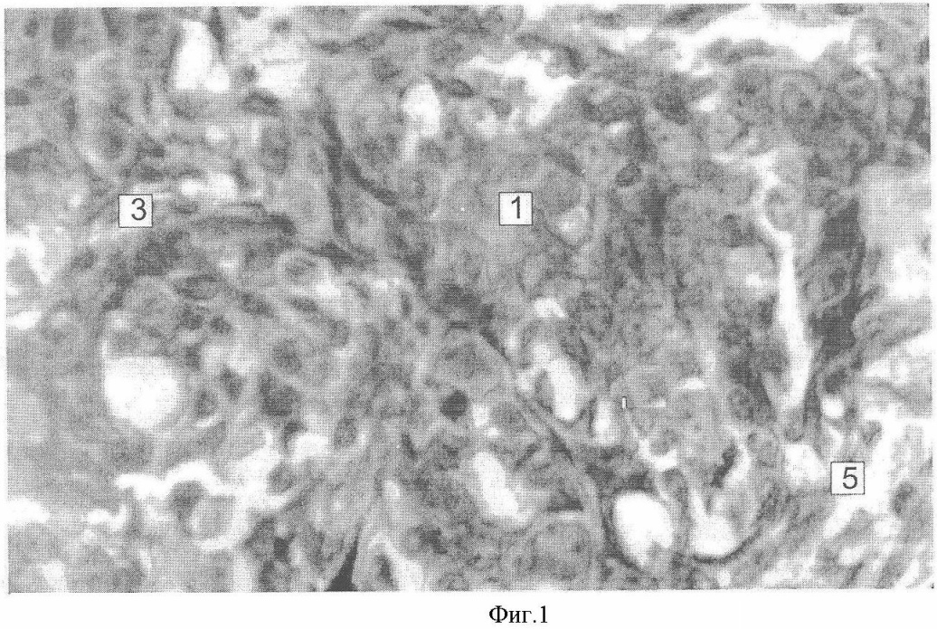 До курса воздействия всем животным проводили пункционную биопсия опухолевого образования с последующим гистологическим и гистостереометрическим исследованием полученного материала. Покраску препаратов проводили с использованием гематоксилина и эозина по Романовскому-Гимза.