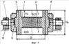 Для уменьшения габаритов и металлоемкости матрицы полости 2 выполнены составными, то есть каждая полость состоит из цилиндрической стенки соответствующей части решетки 1 и бандажного кольца 3, которое плотно (“с натягом”) насажено на решетку 1 по всей высоте этой решетки. Этим создается заранее рассчитанное напряженное состояние: на поверхности раздела обеих деталей 1 и 3 возникает давление, под действием которого стенка решетки 1 сжимается, а бандажное кольцо 3 растягивается. Механические напряжения, возникающие в составных полостях 2 под действием внутреннего давления, распределяются более равномерно по толщине стенки и она получается тоньше, чем в случае, если бы полость 2 не была составной.