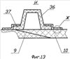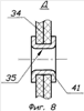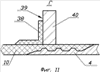 Демпферы 33 Т-образного сечения изготавливают из слоистого композиционного материала, например стеклоткани, пропитанной эпоксидным связующим, методом контактного формования, для чего в месте установки демпфера формуют полудемпфер 38 Г-образного сечения на фланцевой плоскости 39 предварительно установленного съемного кольца 40 и на наружной поверхности обтекателя 3. После его полимеризации снимают кольцо 40 и формуют второй полудемпфер 38, а для дополнительного скрепления полудемпферов 38, кромки такелажных отверстий 35 окантовывают металлическим профилем 41.