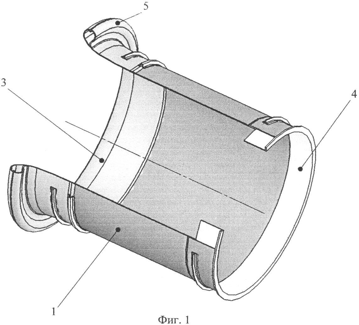 Недостатком известного устройства являются низкая надежность его работы из-за низкого качества оболочечных узлов из слоистого композита при их низкой технологичности, описанной в недостатках способа, и низкого качества финишного покрытия аэродинамических поверхностей и их сопряжения в зоне аэродинамической кромки. Кроме того, недостатком является низкая стойкость к вибрации оболочек, связанной с наличием критических зон, это зоны стыковки узлов, материалов с различными физическими характеристиками, например металла и пластика, и зоны с низкой мембранной жесткостью, а установка демпферов-поглотителей и динамических демпферов в известной конструкции мало эффективна из-за низкой их прочности, а также узлов их крепления. Также недостатком является низкая прочность крепления фланца из-за наличия концентратора напряжений, связанного с резким изменением физических характеристик материалов на границе металл – пластик, отсутствия на поверхностях фланца каких-либо конструктивных зацепов и низкое качество слоев пластика в этой зоне. Кроме того, внешний обтекатель в ниспадающей зоне также имеет низкую вибростойкость из-за резонансов на большой площади оболочки с одинаковыми геометрическими параметрами (постоянной кривизной) и связанной с этим низкой мембранной жесткости.