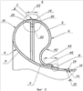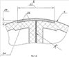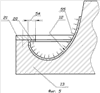 При формовании загибов 20 на рабочих поверхностях съемных колец 21, для повышения технологичности ручной формовки, размер этой рабочей зоны определяют величиной напуска 54 над краем формы, не превышающей 100 мм, а для отсутствия провисания материала загиба 20 и повышения качества материала оболочек их нагружают при отверждении давлением 55 с помощью вакуумного мешка или в автоклаве.