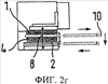 на фиг.8а-8ж – изображение, иллюстрирующее принцип работы выполненного еще по одному варианту устройства в нескольких различных рабочих положениях, при этом на фиг.8а, 8б, 8в, 8е и 8ж устройство показано в виде спереди, а на фиг.8г и 8д – в виде сбоку,