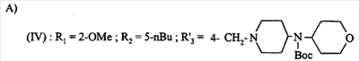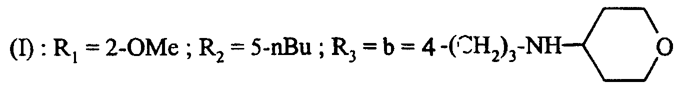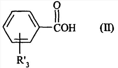 в которой R’3 означает R3, выбранный из группы, состоящей из е2), f1), f2), f4), f5), f6), таких, как указанные для формулы (I), и R3 находится в пара-положении.