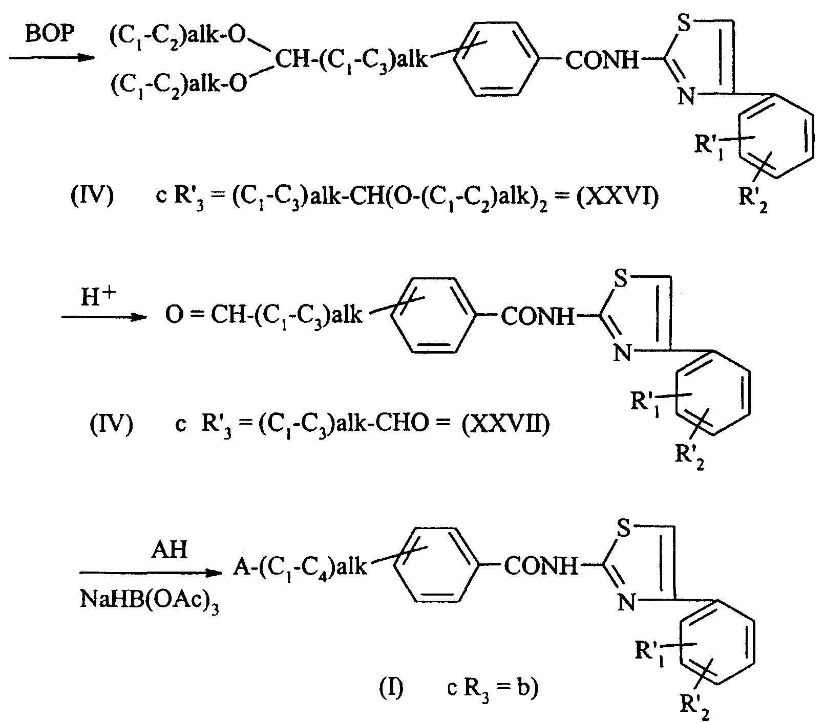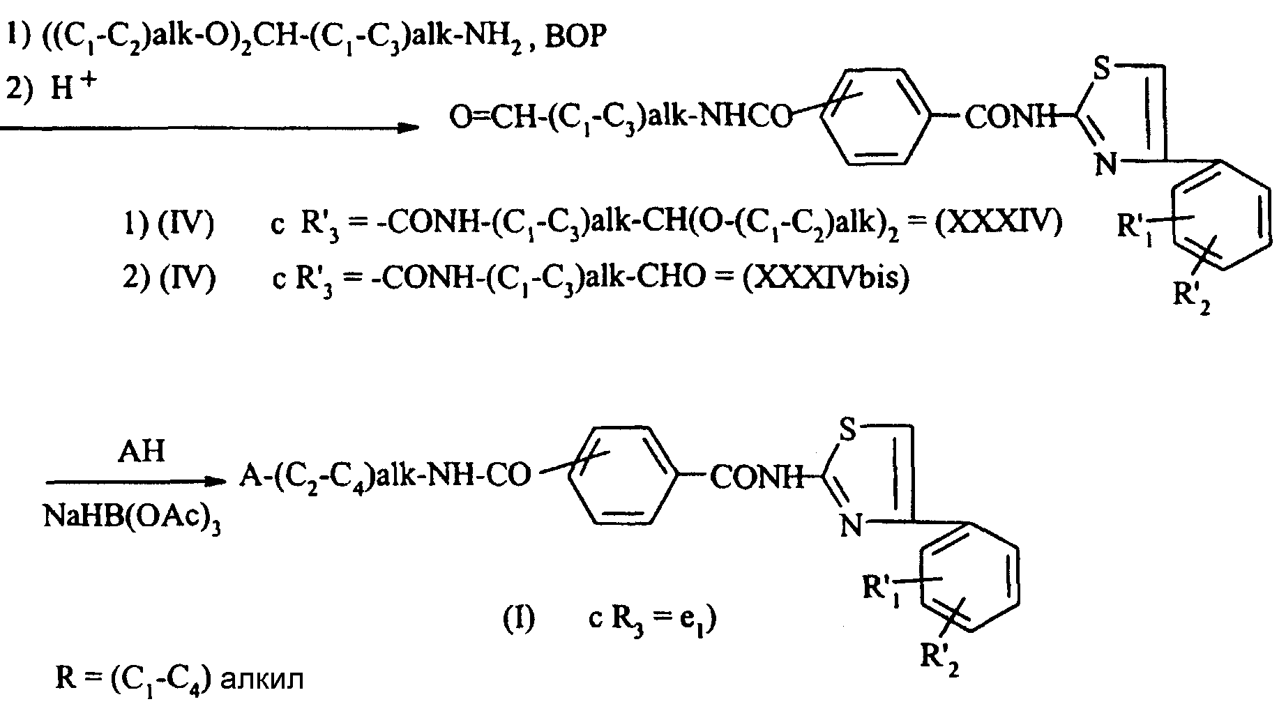 -CONH-(C1-C3)-alk-Q, где Q означает формил;