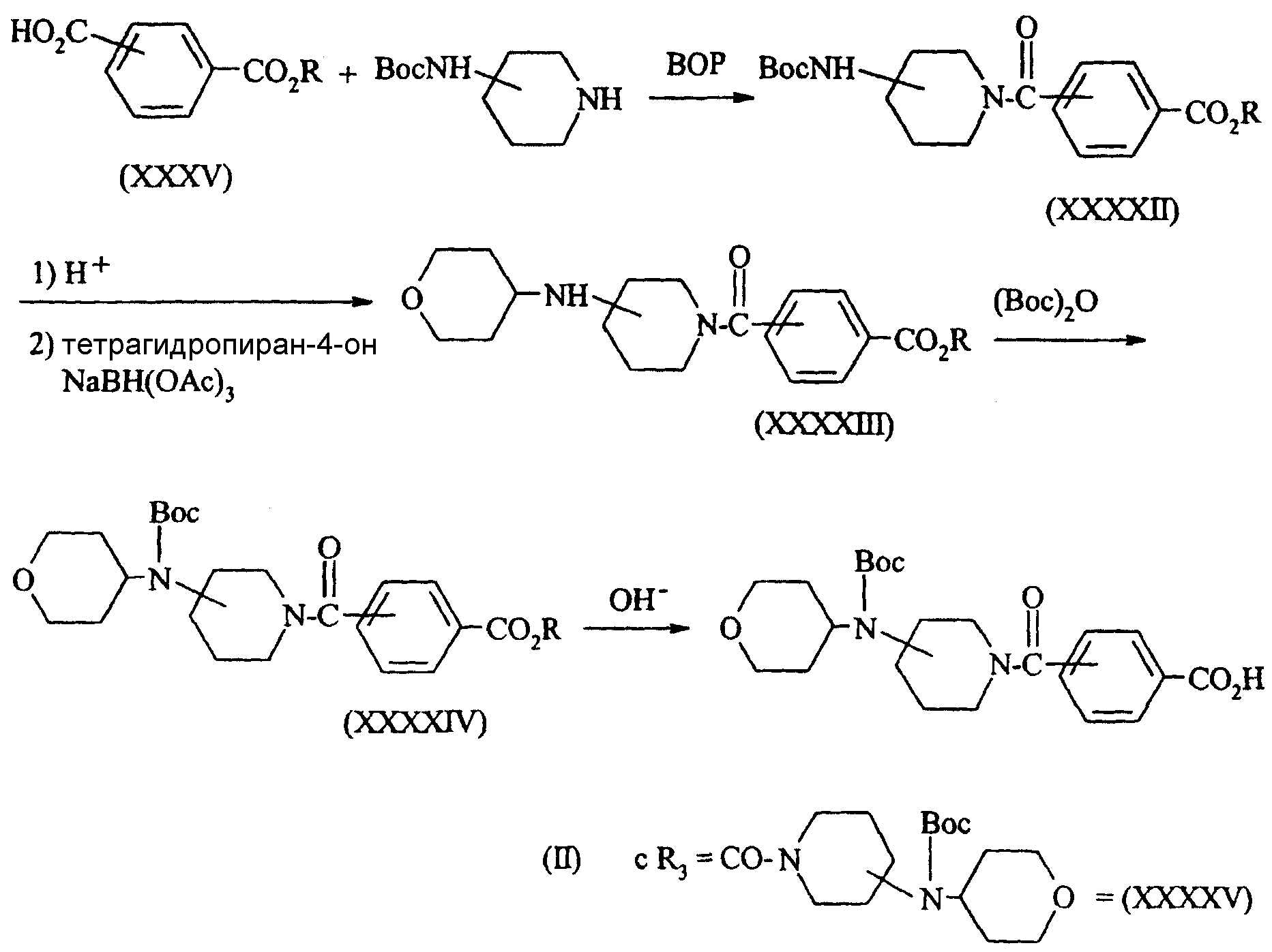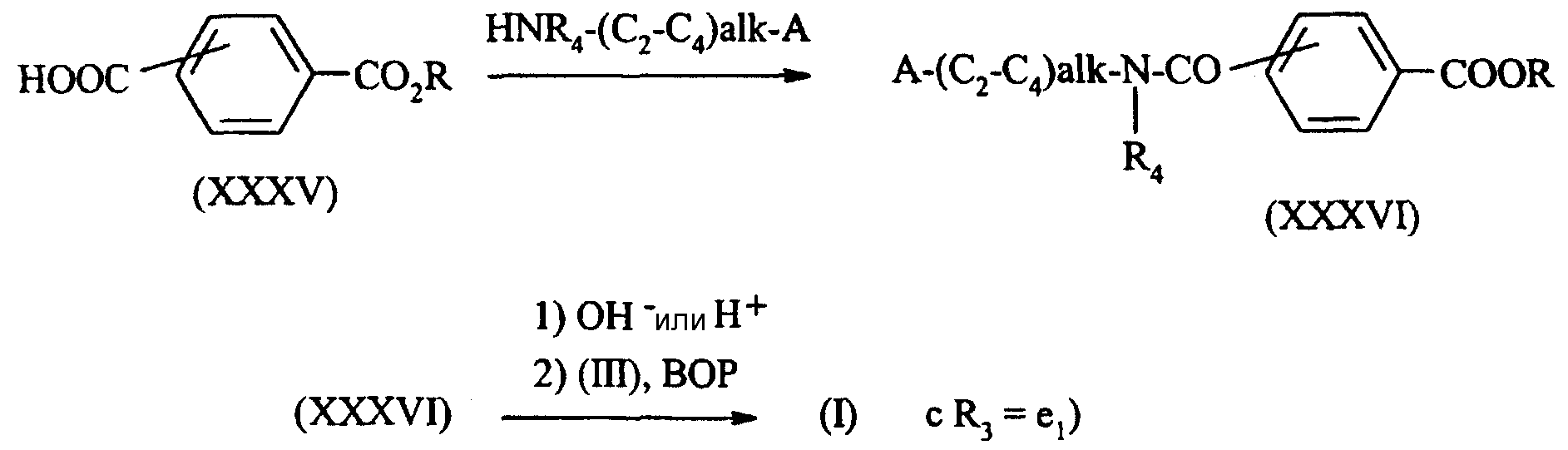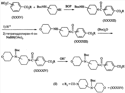 а также их (С1-С4)-алкиловые эфиры формулы (XXXIV) или их бензиловые эфиры, незамещенные или замещенные по фенилу метоксигруппой.