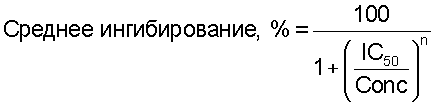 5, то для оценки IC50 данные аппроксимируют с помощью приведенной ниже 2-параметрической модели:
