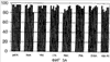 Связывание антителами йодированного GnRH-I демонстрировали для сывороток всех обработок, за исключением сывороток Н2А и W3A, полученных при 7 неделях после иммунизации. Конкуренция с GnRH-I приводила к сильному снижению йодирования GnRH-I (см. фигуру 1), тогда как вытеснение йодированного GnRH-I посредством GnRH-II было высоковариабельным. Как и ожидалось, ни одна из сывороток не связывалась с контрольным пептидом.