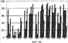 Фигура 5: Процент йодированного GnRH-I, вытесняемого GnRH-I (фигура 5А) и GnRH-II (фигура 5В), для сывороток индивидуальных животных (каждый столбец обозначает одно животное) после иммунизации тандемными димерными пептидами GnRH с заменами аланином, указанными под каждым кластером столбцов. Антисыворотку, полученную спустя 3 недели после бустер-иммунизации (10 wpv), разводили 1:100-1:10000. GnRH-I и GnRH-II для вытеснения добавляли в концентрации 250 пмоль на мл.
