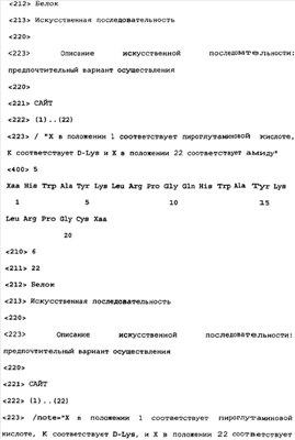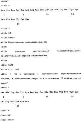 Согласно признаку данного изобретения пептиды данного изобретения имеют общую формулу, изображенную посредством (SEQ ID NO:4) или следующим однобуквенным кодом: