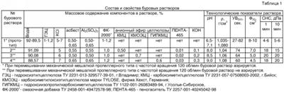 Изобретение относится к нефтедобывающей промышленности, в частности к буровым растворам для промывки глубоких скважин и способам обработки призабойной зоны пласта. Известен буровой раствор [RU Патент №2255104; Кл. С09К 7/02; Опубл. 2005.06.27], содержащий мас.%: гидроксиэтилцеллюлозу 1,0-1,2; хлорид калия 5-7; хризотил-асбест 0,5-0,65; сульфат алюминия 0,5-0,65; смазочную добавку ФК-2000+ 1,0-1,2; воду – остальное. Положительным качеством раствора-прототипа является то, что в его состав входят: полисолестойкий загуститель, ингибитор набухания глин и комплексный реагент «два-в-одном», синтезируемый механохимическим способом в процессе приготовления бурового раствора из хризотил-асбеста, сульфата алюминия и смазочной добавки и придающий буровому раствору противофильтрационные, поверхностно-активные и антифрикционные свойства. При детальном исследовании свойств раствора-прототипа выявлены следующие недостатки: – в процессе длительного перемешивания (циркуляции) раствор-прототип вспенивается (аэрируется); – раствор-прототип имеет относительно высокий показатель фильтрации; – раствор-прототип имеет нейтральную или слабокислую величину рН, недостаточную для эффективного ингибирования процесса гидратации глинистых минералов, так как экспериментально найдено [Steiger R.P. Fundamentals and use to potassium/polymer drilling fluids to minimize with hydratable clays. – J. Petrol. Technology, 1982, v.34, N8], что полимернокалиевые буровые растворы проявляют максимальное ингибирующее действие при значениях рН 8-10. При такой концентрации гидроксильных групп происходит наиболее быстрое насыщение глин и сланцев катионами калия, вследствие чего глинистые минералы дегидратируются и упрочняются. Технический результат, достигаемый изобретением, состоит в профилактике вспенивания бурового раствора и усилении его кольматирующих и ингибирующих свойств. Для реализации поставленной цели кольматирующий буровой раствор, содержащий гидроксиэтилцеллюлозу, хлорид калия, хризотил-асбест, сульфат алюминия, смазочную добавку ФК-2000+ и воду, отличается тем, что он дополнительно содержит анионный простой или смешанный эфир целлюлозы – карбоксиметилцеллюлозу, или карбоксиметилоксиэтилцеллюлозу, или гидроксиизопропилкарбоксиметилцеллюлозу, пеногаситель-триксан ПЕНТА-465, гидроксид калия при следующем соотношении компонентов, мас.%: гидроксиэтилцеллюлоза 1,0-1,2, хлорид калия 5-7, хризотил-асбест 0,5-0,65, сульфат алюминия 0,5-0,65, смазочная добавка ФК-2000+ 1,0-1,2, указанный эфир целлюлозы 0,5-0,7, триксан ПЕНТА-465 0,01-0,03, гидроксид калия до величины рН 8-9, вода – остальное. Существенным отличием предлагаемого бурового раствора является то, что введение в его состав пеногасителя (из трех исследованных реагентов: триксан, трикрезилфосфат и КЭ-20-02, нами выбран первый в связи с его более низким расходным показателем) улучшает эксплуатационные свойства бурового раствора, то есть не дает ему вспениваться. Повышение щелочности бурового раствора до рН 8-9 за счет введения в него гидроксида калия создает оптимальные условия для ингибирования процессов гидратации глинистых минералов, присутствующих в породах пласта. Введение жесткоцепного полимера (анионные эфиры целлюлозы) усиливает противофильтрационные свойства предлагаемого бурового раствора. Совокупность всех компонентов, входящих в предлагаемый буровой раствор, позволяет вскрывать проду