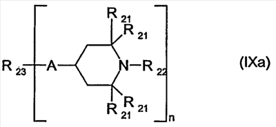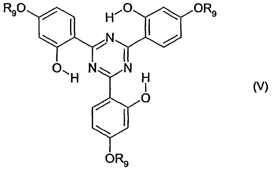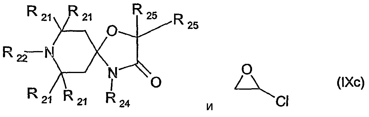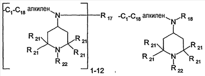 R13, R14, R15 и R16, одинаково или независимо друг от друга, означают водород, линейный или разветвленный алкил, ОН, алкокси. Стерически затрудненные производные пиперидина (HA(L)S), которые используются согласно изобретению, относятся к хорошо известной группе стабилизаторов, которые уже применяются для повышения светостойкости или механических свойств. Такими стерически затрудненными производными пиперидина являются, например, соединения формул (IXa)-(IXc): где, независимо друг от друга, А означает -О- или -NR20-; R20 означает Н, (С1-С18)-алкил или одну из групп R17 означает Н, (С1-С18)-алкил; R18 означает Н, алифатический, циклоалифатический, ароматический или гетероароматический остаток; R21 означает (С1-С18)-алкил; или, соответственно, два связанных с общим атомом углерода остатка R21 образуют (С4-С8)-циклоалкильный остаток; R22 означает Н или (С1-С18)-алкил, (С7-С18)-алкиларил; R23 означает Н, n-валентный алифатический, циклоалифатический, ароматический или гетероароматический остаток; R24 означает (С1-С18)-алкил или -С(О)-(С1-С18)-алкил; R25 означает Н, (С1-С18)-алкил, (С4-С18)-циклоалкил или, соответственно, два остатка R5, связанных с одним и тем же атомом углерода, образуют (С4-С18)-циклоалкильный остаток; n означает целое число >0. В качестве другой добавки в предлагаемых согласно изобретению дисперсиях могут содержаться следующие антиоксиданты: 1.1 алкилированные монофенолы, например 2,6-ди-трет-бутил-4-метилфенол, 2-бутил-4,6-диметилфенол, 2,6-ди-трет-бутил-4-этилфенол, 2,6-ди-трет-бутил-4-н-бутилфенол, 2,6-ди-трет-бутил-4-изобутилфенол, 2,6-дициклопентил-4-метилфенол, 2,4а-метилциклогексил-4,6-диметилфенол, 2,6-диоктадецил-4-метилфенол, 2,4,6-трициклогексилфенол, 2,6-ди-трет-бутил-4-метоксиметилфенол, 2,6-динонил-4-метилфенол, 2,4-диметил-6-(1′-метилундец-1′-ил)фенол, 2,4-диметил-6-(1′-метилгептадецил)фенол, 2,4-диметил-6-(1′-метилтридец-1′-ил)фенол и их смеси; 1.2 алкилтиометилфенолы, например 2,4-диоктилтиометил-6-трет-бутилфенол, 2,4-диоктилтиометил-6-метилфенол, 2,4-диоктилтиометил-6-этилфенол, 2,6-дидодецилтиометил-4-нонилфенол; 1.3 гидрохиноны и алкилированные гидрохиноны, например 2,6-ди-трет-бутил-4-метоксифенол, 2,5-ди-трет-бутилгидрохинон, 2,5-ди-трет-амилгидрохинон, 2,6-дифенил-4-октадецилоксифенол, 2,6-ди-трет-бутилгидрохинон, 2,5-ди-трет-бутил-4-гидроксианизол, 3,5-ди-трет-бутил-4-гидроксианизол, 3,5-ди-трет-бутил-4-гидроксифенилстеарат, бис(3,5-ди-трет-бутил-4-гидроксифенил)адипат; 1.4 токоферолы, например 1.5 гидроксилированные тиодифениловые эфиры, например 2,2′-тиобис(6-трет-бутил-4-метилфенол), 2,2′-тиобис(4-октилфенол), 4,4′-тиобис(6-трет-бутил-3-метилфенол), 4,4′-тиобис(6-трет-бутил-2-метилфенол), 4,4′-тиобис(3,6-ди-втор-амилфенол), 4,4′-бис(2,6-диметил-4-гидроксифенил)дисульфид; 1.6 алкилиденбисфенолы, например 2,2′-метиленбис(6-трет-бутил-4-метилфенол), 2,2′-метиленбис(6-трет-бутил-4-этилфенол), 2,2′-метиленбис[4-метил-6-( 1.7 О-, N- и S-бензильные соединения, например 3,5,3′,5′-тетра-трет-бутил-4,4′-дигидроксидибензиловый эфир, октадецил-4-гидрокси-3,5-диметилбензилмеркаптоацетат, трис(3,5-ди-трет-бутил-4-гидроксибензил)амин, бис(4-трет-бутил-3-гидрокси-2,6-диметилбензил)дитиотерефталат, бис(3,5-ди-трет-бутил-4-гидроксибензил)сульфид, изооктил-3,5-ди-трет-бутил-4-гидроксибензилмеркаптоацетат; 1.8 гидроксибензилированные малонаты, например диоктадецил-2,2-бис(3,5-ди-трет-бутил-2-гидроксибензил)малонат, диоктадецил-2-(3-трет-бутил-4-гидрокси-5-метилбензил)малонат, дидоде