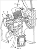 Фиг.2: Разрез звездообразного двигателя, ведомый вал которого соединен с валом вентилятора, расположенным внутри картера звездообразного двигателя.