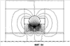 55. Опора вращения с магнитной разгрузкой тел качения от действия центробежных сил, содержащая два базовых элемента, функционально являющихся кольцами упорного подшипника, которые установлены с возможностью относительного вращения и выполнены с кольцевыми дорожками качения на оппозитно расположенных рабочих поверхностях, в которых размещены тела качения в контакте с соответствующими участками поверхности упомянутых дорожек, а также средство магнитной разгрузки тел качения от центробежных сил, представляющее собой магнитную систему, включающую стандартные конструктивные элементы подшипника и кольцевую магнитную вставку, функционально являющуюся источником постоянного магнитного поля, которая кинематически связана с одним из базовых элементов подшипника и размещена, преимущественно, концентрично в области тел качения со стороны оси вращения опоры; при этом магнитная система в целом сформирована таким образом, что создаваемые ею силы магнитного притяжения, действующие на тела качения, противодействуют центробежным силам, действующим на эти тела в динамическом режиме эксплуатации опоры, отличающаяся тем, что в состав магнитной системы, из стандартных конструктивных элементов непосредственно опоры, в целом входят только тела качения; магнитная вставка включает, по меньшей мере: четное число составляющих магнитных элементов и расположенный между ними в каждой смежной паре магнитных элементов промежуточный элемент; векторы намагниченности в близлежащих магнитных элементах магнитной вставки имеют различное направление; при этом магнитная система в целом сформирована таким образом, что эффективная часть создаваемого магнитной системой магнитного потока, обеспечивающая притяжение тел качения в направлении оси вращения, превышает ту часть магнитного потока, которая приходится на потоки рассеяния, не используемые для упомянутого притяжения.