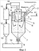Распыливающий агент, например воздух, подается по трубке 21, где встречает на своем пути кольцевой объемный резонатор 19. В результате прохождения резонатора 19 распыливающим агентом (например, воздухом) в последнем возникают пульсации давления, создающие акустические колебания, частота которых зависит от параметров резонатора. Акустические колебания распыливающего агента способствуют более тонкому распыливанию раствора, подаваемого через трубку 22 в сопло 24, откуда он попадает на окружность, находящуюся в средней части конической поверхности резонатора 19, затем дробится под воздействием акустических колебаний воздуха на мелкие капли, в результате чего образуется факел распыленного раствора с воздухом, корневой угол которого определяется величиной угла наклона конической поверхности 25 резонатора 19. В результате сушки получают тонкие порошки продуктов с влажностью до 0,8%. Высокие относительные скорости фаз в зоне выхода теплоносителя из тангенциальных сопел способствуют проведению процесса сушки с максимальной интенсивностью.
