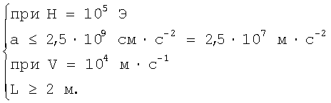 Параметры артиллерийского снаряда с системой ускорения на сверхпроводнике определяются из (1) следующим естественным образом в CGSM по формуле для определения ускорения артиллерийского снаряда: