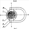 4. Форму в сборе центрируют относительно оси z розетки 29 и разворачивают по часовой стрелке так, чтобы электроды 2 были расположены ортогонально базам пространственных тензорезисторов (см. фиг. 1…3). Такое размещение в литейной форме электродов 2 является необходимым условием изготовления однонаправленности композита, которое обеспечивает, как показано ниже, армирование датчика высокомодульными нитевидными волокнами послойно, по компонентам розетки, в направлениях главных деформаций (х, у, z).