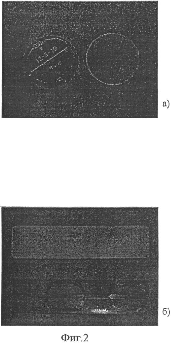 На фиг.2. изображены типовые пары «индуктор-керамический протектор»: а) – пара «индуктор-протектор» для универсального ЭМАП, применяющихся при ультразвуковом контроле листового, сортового проката и труб; б) – пара «группа индукторов-протектор» так же универсального назначения. Рабочая плоскость протектора, как правило, находится на одном уровне с рабочей поверхностью подложки или несколько «утоплена». Можно сказать, что протектор находится внутри подложки, «вклеен» в нее. Его рабочую поверхность, как правило, не требуется согласовывать с формой поверхности объекта контроля ввиду малости размеров протектора. При таком подходе минимизация размеров протектора снижает протяженность его контура, контактирующего и взаимодействующего с подложкой, и в целом благоприятно сказывается на продолжительности работы ЭМАП. Уменьшение размеров подложки, однако, ограничено размерами индуктора или группы индукторов.