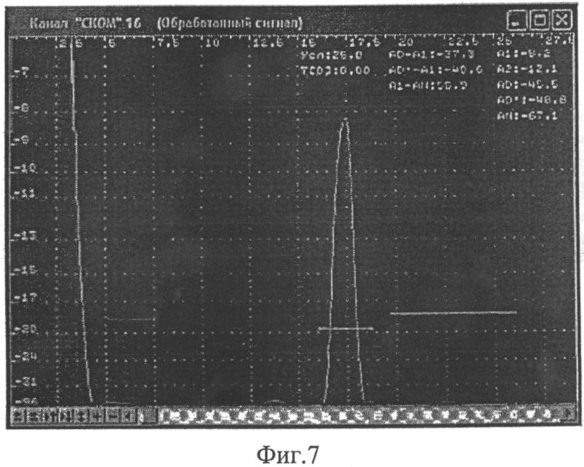 Фиг.8. А-развертка сигнала, полученного с помощью ЭМАП, подложка которого совмещена с протектором и целиком выполнена из керамики.