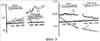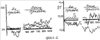 1а. Две пары датчиков устанавливали в поперечном направлении к оси железнодорожного пути на расстоянии 2,5 м друг от друга. За базовую принимали первую пару датчиков в подошве насыпи в данном сечении. Кривые разности порового давления и температур на графиках (фиг.1) показывают, что в измеряемых точках разности температуры и порового давления до и после приложения нагрузки близки к нулю и не превышают флуктуационные колебания температуры и порового давления в пределах соответственно до 0,015°С и до 0,1 кПа. Полученные результаты свидетельствуют о стабильном состоянии грунтов ТС в поперечном сечении.