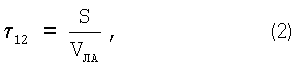 На фиг.4 цифрами 1 и 2 показаны продольные размеры проекций первого и второго элементов ПИ. Из фиг.4 видно, что время между появлением сигналов на первом и втором элементах ПИ – 12 при неподвижном наземном объекте определится как: