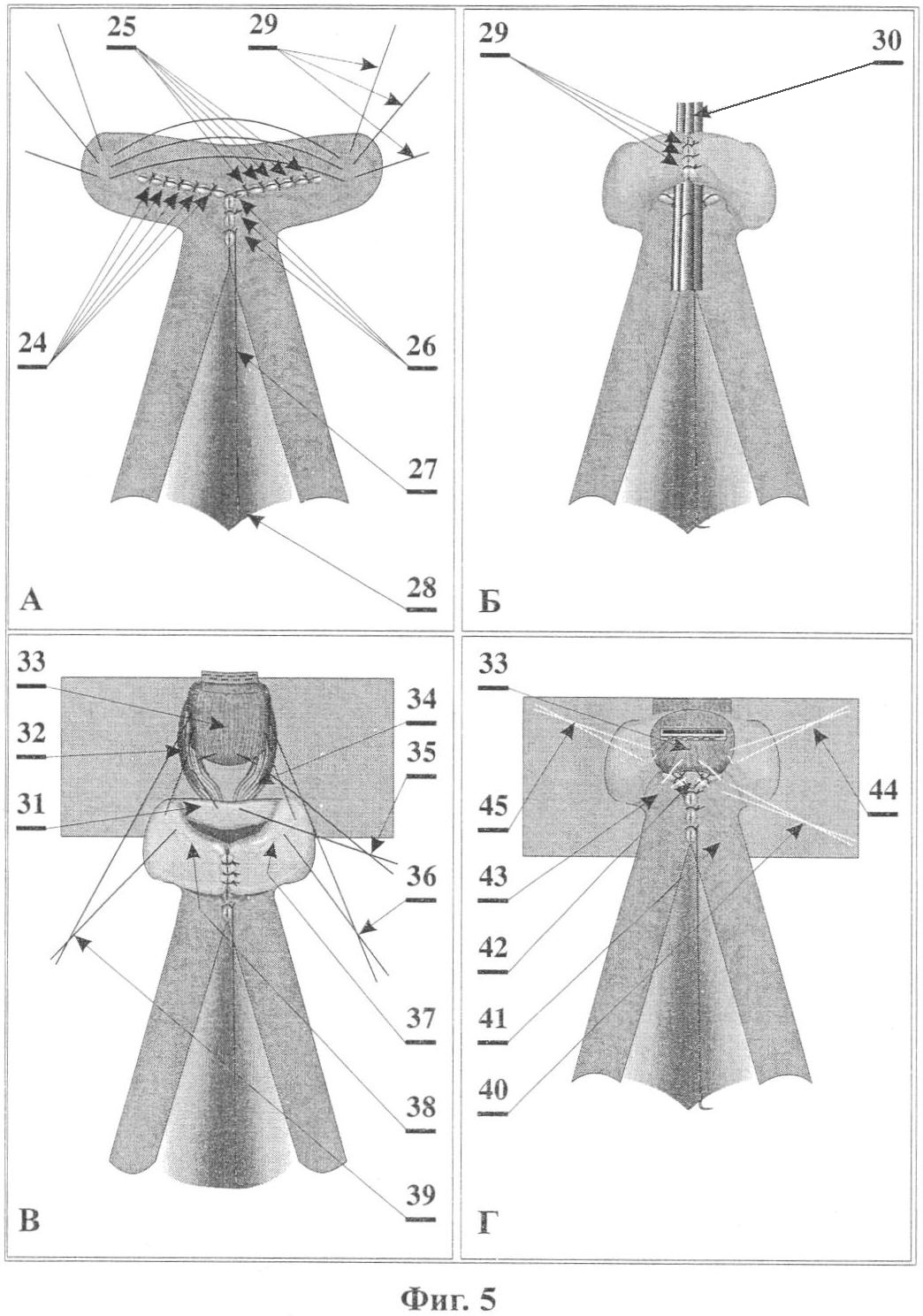 На фиг.5а представлен этап формирования Т-образной ракетки из петли тощей кишки, где