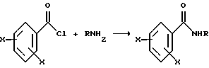 Описываемые соединения можно получить с помощью известных методов, применяемых для получения имидов. Общая реакционная схема включает взаимодействие замещенного амина или аммония с замещенным бензоилхлоридом в соответствии со следующей реакцией:![]() ![]() Приведенные ниже примеры служат для описания настоящего изобретения и не должны трактоваться как ограничительные в отношении объема настоящего изобретения, который определяется только формулой изобретения. ПРИМЕР 1 Метил N-бензоил-3-амино-3-(3′,4′-диметоксифенил)пропионат. К охлажденной на ледяной бане перемешиваемой суспензии гидрохлорида метил 3-амино-3-(3′,4′-диметоксифенил) пропионата (0,689 грамм, 2,50 ммоль) и триэтиламина (0,7 миллилитров, 5 ммоль) в 15 миллилитрах тетрагидрофурана добавляют 0,3 миллилитра бензоилхлорида (2,6 ммоль). Через 15 минут удаляют охлаждающую баню и перемешивают смесь еще в течение 45 минут. Затем реакционную смесь разбавляют 15 миллилитрами солевого раствора и 15 миллилитрами воды, после чего проводят частичное концентрирование в вакууме для удаления тетрагидрофурана. Реакционную кашицу фильтруют, высушивают на воздухе полученное твердое вещество и затем высушивают в вакууме (60oC, < 1 мм) с получением 0,86 г (100%) белого порошкообразного продукта: 1Н ЯМР (ДМСО-d6, 250 МГц) 8,84 (д, J= 8,3 Гц, 1H, NH), 7,83 (м, 2H, Ar), 7,60-7,35 (м, 3H, Ar), 7,06 (с, 1H, Ar), 6,90 (м, 2H, Ar), 5,50-5,30 (м, 1H, CHN), 3,75 (с, 3H, OCH3), 3,72 (с, 3H, OCH3), 3,46 (с, 3H, СO2CH3), 3,05-2,75 (м, 2H, CH2);13С ЯМР (ДМСО-d6) 170,8, 165,6, 148,6, 147,9, 134,9, 134,5, 131,2, 128,3, 127,3, 118,5, 111,6, 110,6, 55,5, 55,5, 51,4, 49,7, 40,6.