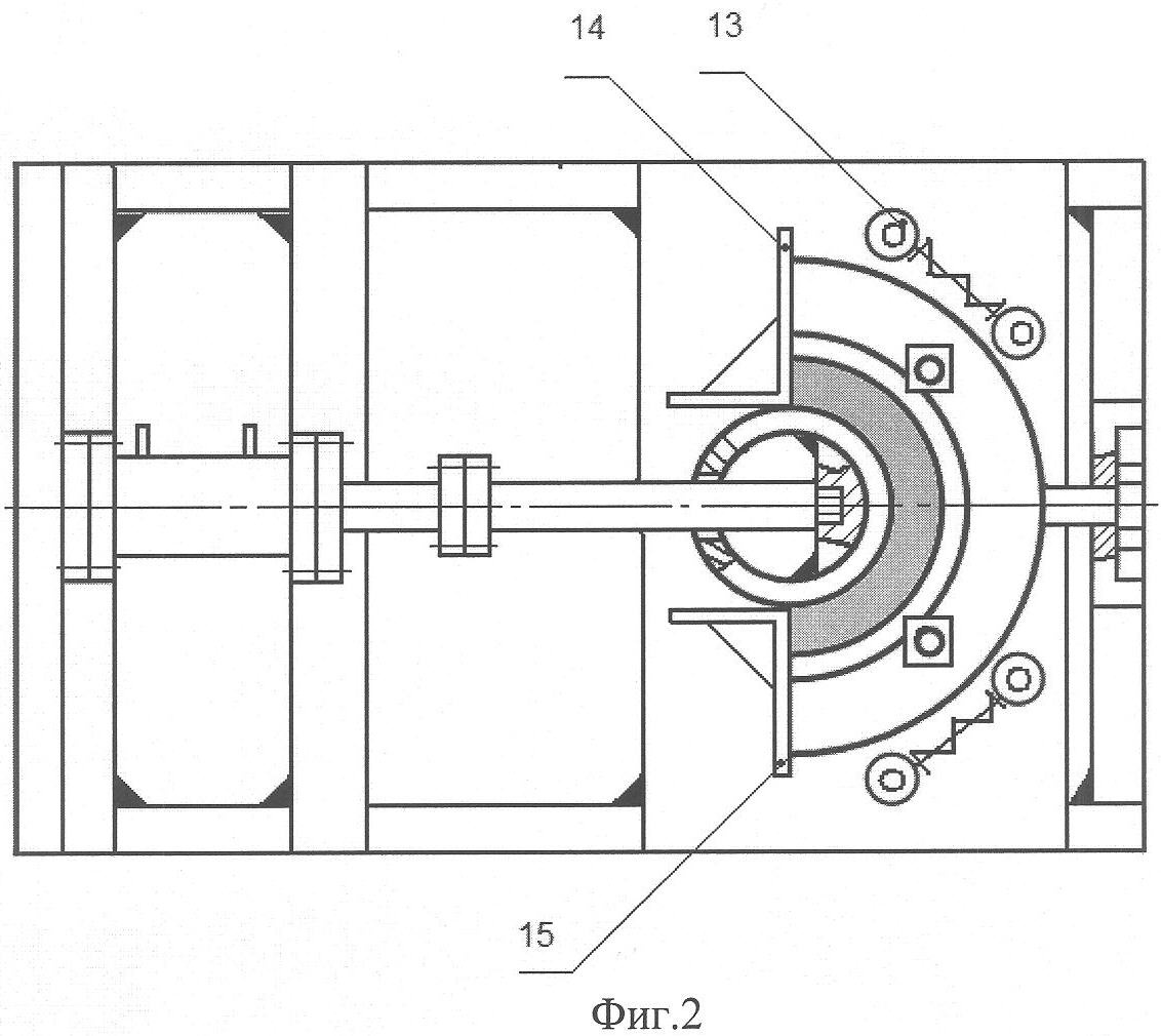 На фиг.2 показано устройство для осуществления способа с используемым оборудованием, вид сверху, где поз.13 показаны нагреватели для нагрева вкладыша. Поз. 14, 15 – упоры для фиксации вкладыша.