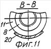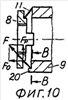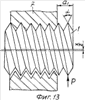 Расточная головка состоит из микрометрического винта, выполняющего роль резцедержателя 1. На одном конце резцедержателя 1 выполнено гнездо под режущую пластику 2, закрепляемую, например, прижимом 3 с помощью винта 4, а на другом установлена шпонка 5. Шпонка 5 имеет возможность скользить по шпоночному пазу оправки 6 и предотвращает поворот резцедержателя 1 вокруг своей оси. С резцедержателем 1 по резьбе сопряжены лимб 7 и втулка 8. Лимб 7 установлен в корпусе 9 с возможностью вращения. На торце корпуса 9 для точной настройки резцедержателя 1 выполнен нониус 10. Между втулкой 8 и корпусом 9 установлен упругий элемент 11. Упругий элемент 11 может быть выполнен в виде: тарельчатой пружины, изогнутой шайбы, волнистой шайбы. Причем упругий элемент 11 может быть выполнен заодно со втулкой 8 в виде: тарельчатой пружины (фиг.7) с опорами качения 12, прорезной пружины (фиг.5, 6) с опорной поверхностью 13 на корпус 9 и т.д. Лимб 7 взаимодействует с втулкой 8 (т.е. передает крутящий момент) посредством пазов 14 и выступов 15, выполненных соответственно в лимбе 7 и втулке 8. В качестве элементов, передающих крутящий момент, могут быть также заплечики 16 и 17 (фиг.7), выполненные за счет половинчатого выреза торцов в лимбе 7 и втулке 8 соответственно. В центральном отверстии лимба 7 кроме резьбы выполнена точная кольцевая выточка 18 в виде внутренней цилиндрической поверхности диаметром d (фиг.4), а в резцедержателе 1 вершины резьбы обработаны (срезаны), не нарушая среднего диаметра резьбы, по диаметру d выточки 18 и образуют наружную цилиндрическую поверхность 19 диаметром d (фиг.8). Это сделано для точного центрирования резцедержателя 1 и исключения эффекта его самовытягивания в процессе резания за счет угла профиля резьбы на величину ( =a1-а, фиг.12, 13) под действием силы резания Р и при наличии в резьбе незначительных зазоров или недостаточном натяге. Известно, что резьба является неточным элементом для центрирования. В любой подвижной посадке (точной, гладкой, цилиндрической) существует определенный зазор (фиг.8). Он легко контролируемый и значительно меньше, чем в резьбовых сопряжениях, тем более, что резьба находится в напряженном состоянии от действия упругого элемента 11 и при регулировке изнашивается, тем самым, увеличивается зазор Х= tg( /2). Для выбора зазора в некоторых случаях может быть использован способ, представленный на фиг.10 и 11, где на торце корпуса 9 выполняется бурт 20. При сборке лимба 7, втулки 8, корпуса 9 и упругого элемента 11 происходит давление упругим элементом 11 на бурт 20 силой F, которая разлагается на Fo – осевую и Fp – радиальную, и смещение втулки 8 в радиальном направлении за счет силы Fp. Если бурт 20 выполнить в нужном месте в направлении результирующих сил резания, то появляется возможность исключить также эффект самовытягивания резцедержателя 1. Но в большинстве случаев радиальный зазор выбирается винтом 21 с помощью проставки 22, смонтированными в оправке 6, и зажатой с определенным крутящим моментом. Чтобы исключить измерение момента при затягивании винта 21, между винтом 21 и проставкой 22 может быть установлен упругий элемент 23, но с последующим взаимодействием винта 21 с проставкой 22 для создания необходимого натяга. В качестве упругого элемента 23 может быть использован упругий материал, например резина, полимеры и т.д. с целью выбора зазора и создания натяга 
