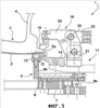 Также на каждом ползуне предусмотрены средства 18 для фиксирования центрируемой части, которые содержат фиксирующий башмак 19, прикрепленный к штанге 20, шарнирно в точке 21 смонтированной на ползуне. К штанге 20 также шарнирно в точке 22 прикреплен конец рабочего шпинделя 23 домкрата 24, смонтированного на ползуне. При помощи рычажной штанги, сформированной между шарнирными точками 21 и 22 поворота, фиксирующий башмак 19 перемещается от и в рабочее положение, в котором он прижимается к колесу 2 на крае 5а для обеспечения его относительного фиксирования.