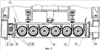 На фиг.1 изображен пример выполнения экструдера для изготовления многопустотных плит в продольном разрезе; на фиг.2 – то же, в поперечном разрезе; на фиг.3 – пример конструкции рабочего элемента экструдера при изготовлении в плите пустот, имеющих нецилиндрическую форму; на фиг.4 – схема привода опорных катков экструдера.