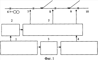 Сущность предлагаемого способа (фиг.1) состоит в том, что после включения группового кодово-включающего реле (узел 1) через схему задержки (узел 2) осуществляется воздействие на индивидуальные кодово-включающие реле (узел 4), которые совместно с КПТ (узел 2) образуют схему кодирования рельсовых цепей (узел 5). Благодаря узлу задержки 3 кодирование рельсовых цепей 7, 8 и 9 начинается не с момента их занятия, а с выдержкой времени, которая равна или превышает интервал времени от момента занятия до истечения длинного интервала кодового цикла. Это приводит к тому, что первый кодовый цикл из каждой рельсовой цепи будет восприниматься локомотивными устройствами при обесточенном состоянии всех счетчиков дешифратора. Поэтому сократится количество искаженных кодовых циклов АЛС с трех (максимум) до одного, двух (максимум).