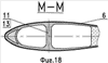 В целях устранения высоконагруженного стыка лопасти 6 с торсионом 2 и, как следствие, снижения веса конструкции лопасть 6 может быть выполнена как единое целое с торсионом 2. На фиг.13…18 показан вариант конструкции такого винта. В этом варианте материал лопасти 6 является продолжением материала силовых элементов 11 ее торсиона 2. В этом же варианте конструкции соединение торсионов 2 с валом 1 винта выполнено при помощи горизонтальных шарниров. Такой вариант востребован, когда требуется обеспечить минимальную изгибную жесткость в вертикальной плоскости (плоскости взмаха лопасти) в месте соединения торсионов с валом винта, а также связанные с этим необходимые эффективность управления и уровень вибраций на винте. При этом наличие дополнительных промежуточных деталей, например, в виде болтов 16, проушин 17, пальцев 18, корпуса 19 втулки и гайки 20 вала может быть оправдано для удовлетворения специальным техническим требованиям к параметрам винта.