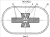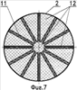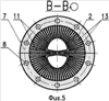 На фиг.19…21 показан винт, у которого каждый кожух выполнен в виде отдельной трубы 29, выполняющей одновременно функции трубы управления и переходной детали для стыковки лопасти и торсиона. Труба 29 жестко соединена с наружным концом (заделкой) торсиона 2 болтами 30, и при этом непосредственно к трубе 29 болтами 31 и 32 крепится лопасть 6. При достаточно высоких изгибных жесткостях торсиона 2 и трубы 29 в этом варианте дополнительных опор для внутреннего конца трубы 29 с поводком лопасти не требуется.