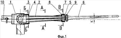 Так, например, на фиг.1…7 и на фиг.13…18 показаны воздушные винты, у которых управление углами установки каждой лопасти осуществляется при помощи поводка 10, выполненного в виде балки переменного сечения и жестко соединенного с наружным концом торсиона 2. Изгибные жесткости торсионов для этих вариантов конструкции высоки, и поводку 10 не требуется дополнительных опор.