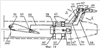 33. Система управления безаэродромным всепогодным самолетом с вертикальным взлетом и посадкой, содержащая средства изменения направления вектора тяги, отклоняемую заднюю кромку несущих полуплоскостей, шарнирно соединенную с соответствующей полуплоскостью, эжектирующее щелевое устройство, приводы управления и регулирования, включая режимы вертикальных и переходных режимов полета, размещенные в кабине органы управления, соединенные тросовой проводкой, тягами и качалками с рулями и силовыми, используемыми в горизонтальном полете, по крайней мере, приводами, отличающаяся тем, что система выполнена комбинированной, для чего дополнительно к перечисленным аэродинамическим средствам – элеронам, щиткам и их приводам имеет систему для управления в аэростатических режимах полета, состоящую из устройств регулируемого выпуска предкромочным устройством отобранной части воздушного потока из воздушного тракта двигателя с возможностью регулирования обтекания верхней и нижней поверхностей крыла и оперения, выпуска из щелей стабилизатора и эжектирования обтекающего крыло и оперение воздуха закромочным щелевым воздухозаборником, соединенным магистралью с ресивером сопла, сообщенным с центральной частью реактивной струи двигателя, при этом каждый распределитель выпуска потока перед кромкой и эжектирования его за кромкой имеют привод его поворота вокруг своей оси для совмещения требуемого ряда щелей – центрального, концевого или корневого с выпускными щелями корпуса распределителя.