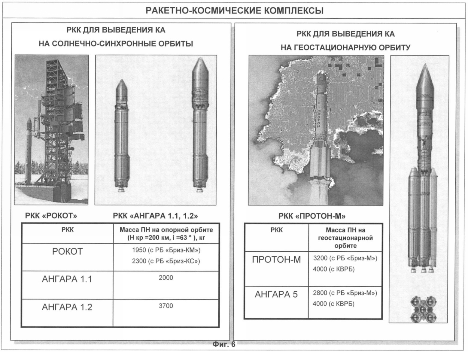 Используемые для запуска МКА международной аэрокосмической системы мониторинга комплексы средств выведения должны предусматривать возможность одиночного, попутного и пакетного выведения малых КА и МККА с использованием ракетно-космических комплексов (фиг.6), развернутых на российских 73-78 и зарубежных космодромах.
