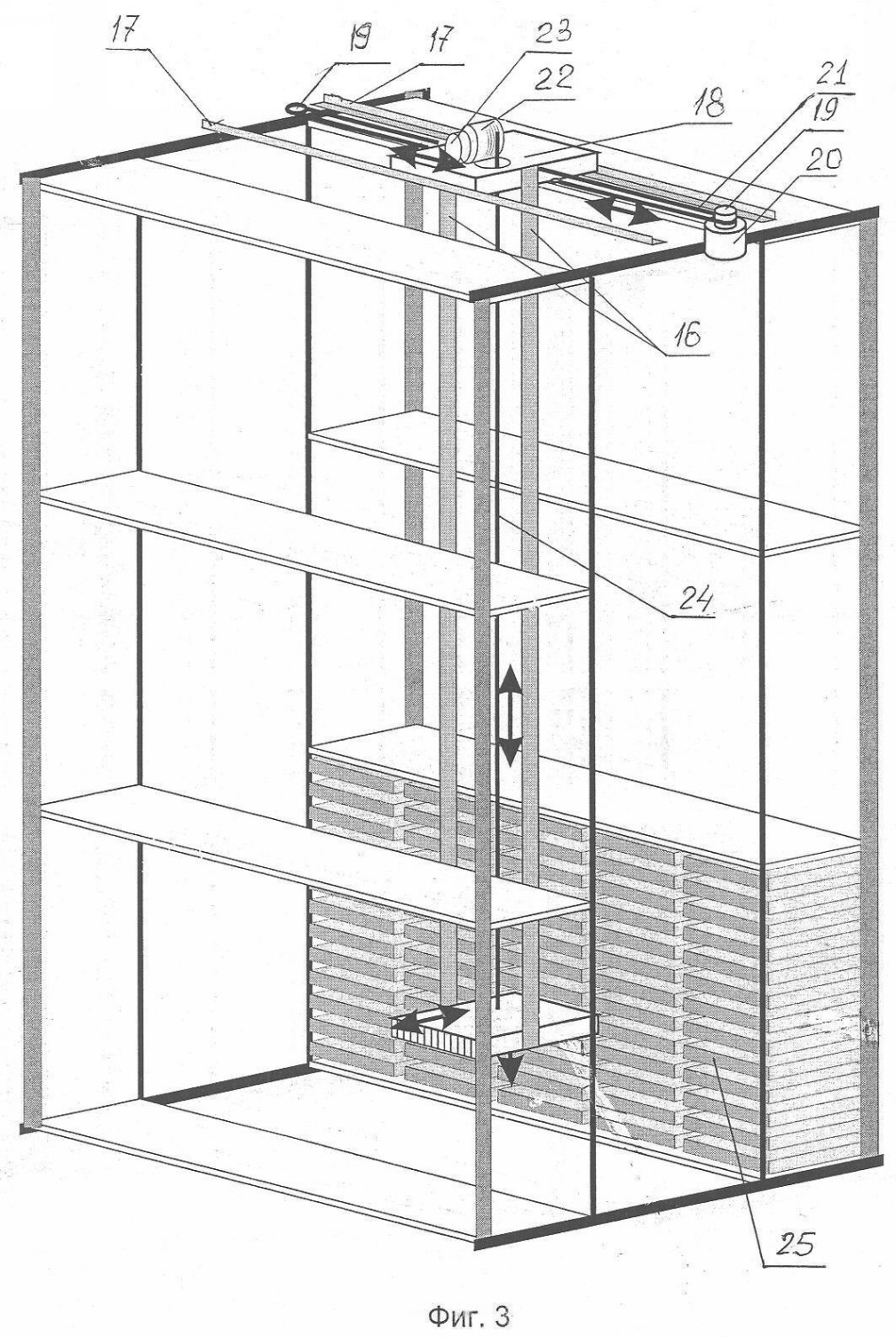 23 – привод вращения для вертикального перемещения средства захвата товара;