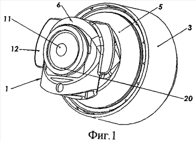 Корпус 3 также снабжен вырезом (поднутрением) 36 (показана подробно на фиг.7), обеспечивающим закрепление колоколообразного элемента 27 на корпусе 3.