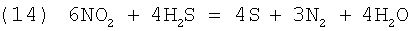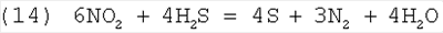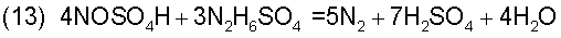 Данный процесс позволяет из сероводородсодержащего газа, продукта десульфуризации коксового газа, получать только кислоту серную техническую. Существенным недостатком этого способа получения серной кислоты является то, что денитрификация технологического газа происходит на 80%, а подаваемый в избытке аммиак в конверторе окисляется до NOx, при этом наличие окислов азота в количестве 30 ppm не позволит получить улучшенную серную кислоту с содержанием N2O3 менее 0,5 ppm. Сущность изобретения заключается в следующем. Изобретение направлено на решение задачи получения серной кислоты улучшенного качества, утилизации отходов денитрификации, снижения вредных выбросов в дымовых газах. Решение данной задачи опосредовано новым техническим результатом, который заключается в снижении содержания окислов азота в серной кислоте до 0,5 ppm, а также снижении содержания окислов азота в отходящих дымовых газах до 10 мг/м3. Данный технический результат в процессе производства серной кислоты достигают за счет того, что процесс денитрификации проводят в две стадии: предварительная промывка сероводородсодержащего газа водой и финишная обработка серной кислоты восстановителями, такими как гидразин или гидразинсульфат. Предварительная промывка сероводородсодержащего газа водой позволяет: а) снизить содержание окислов азота в продуктах его сгорания до 10 мг/м3, причем промывочная вода утилизируется, б) исключить использование аммиака для удаления окислов азота из продуктов сгорания сероводородсодержащего газа, избыток которого превращается в окислы азота, в) эффективно проводить финишную обработку восстановителями серной кислоты с пониженным содержанием окислов азота, что позволяет получать серную кислоту улучшенного качества с содержанием Н2О3 менее 0,5 ppm (0,00005% мас.). СУЩЕСТВЕННЫЕ ПРИЗНАКИ Способ получения серной кислоты из сероводородсодержащего газа, содержащего аммиак, включающий стадию его сжигания с получением первого технологического газа, содержащего диоксид серы и оксид азота, стадию денитрификации, стадию конверсии сернистого газа с получением второго технологического газа, содержащего триоксид серы и диоксид азота, стадию конденсации серной кислоты. ОТЛИЧИТЕЛЬНЫЕ ПРИЗНАКИ Денитрификацию производят путем одновременного введения двух стадий: предварительной водной промывки сероводородсодержащего газа с утилизацией промывочной воды, например, на установке Клауса и финишной обработки серной кислоты восстановителем, причем количество воды для промывки составляет 5-50% от массы сероводородного газа, а в качестве восстановителя используют гидразин или гидразинсульфат. Способ получения серной кислоты осуществляют следующим образом. Сероводородсодержащий газ блока сероочистки, содержащий аммиак, промывается водой в смесителе, где примеси аммиака связываются с водой с образованием гидроксида аммония (уравнение 6). Затем вода отделяется от сероводородсодержащего газа в сепараторе и подается на установку получения серы методом Клауса в колонну десорбции; выделившиеся после десорбции сероводород и аммиак сгорают до диоксида серы и оксида азота соответственно, далее окислы взаимодействуют на катализаторе с сероводородом с образованием элементарной серы и азота (уравнение 14). Сероводородсодержащий газ с пониженным содержа