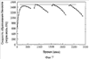 На фиг.4 изображен типичный график зависимости скорости образования бензола от времени в указанных реакционных условиях. Из этого графика видно, что каталитическая активность имеет тенденцию к постепенному снижению в течение первой реакции, но затем относительно хорошо подвергается регенерации; кроме того, пиковое значение скорости образования бензола в шестой реакции, т.е. реакции, проводимой после пятой регенерации, снижается на 11% по сравнению с первой реакцией.
