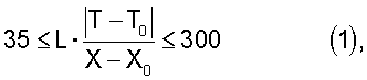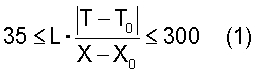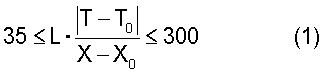 (В уравнении 1 L, T0, X и Х0 соответственно означают: длину реакционной трубки (единица: мм), пиковую температуру катализатора в направлении оси трубки в начале процесса (единица: °С), длину от входа в реакционную трубку вплоть до положения, которое показывает пиковую температуру Т (единица: мм), и длину от входа в реакционную трубку вплоть до положения, которое показывает пиковую температуру Т0 (единица: мм)).