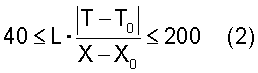 (В уравнении 1 L, T0, X и Х0 соответственно обозначают длину реакционной трубки, пиковую температуру катализатора в направлении оси трубки в начале процесса, длину вплоть до положения, которое показывает пиковую температуру Т у входа реакционной трубки и длину вплоть до положения, которое показывает пиковую температуру Т0 у входа реакционной трубки.)
