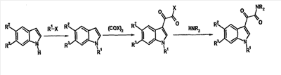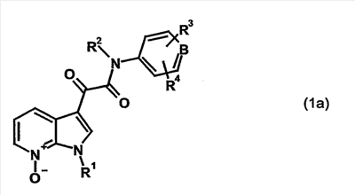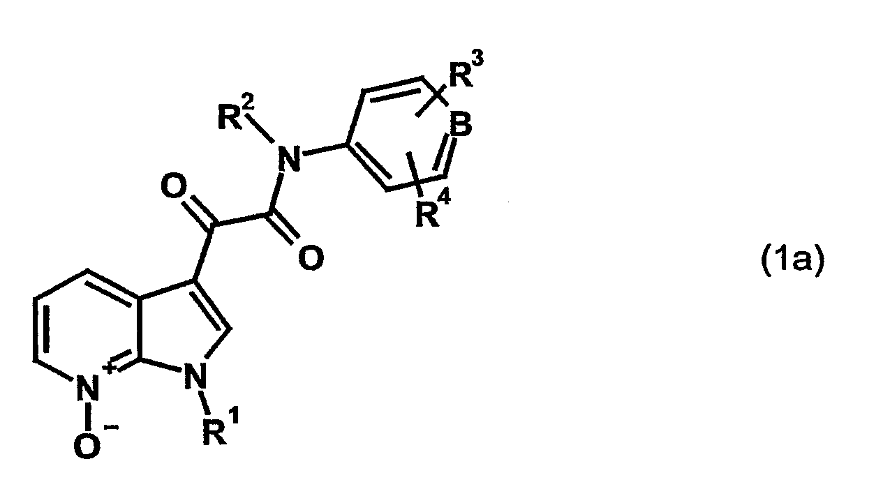 где (a) А обозначает N-оксидную группу и В обозначает СН, азот, (b) А обозначает азот и В обозначает N-оксидную группу, или (c) А и В обозначают N-оксидную группу, R1 обозначает (i) -С1-10-алкил, неразветвленный или разветвленный, который в случае необходимости, однозамещенный насыщенным моно-С3-С6 карбоциклом, или моно-, би- многократно ненасыщенным С6-С10 карбоциклом, причем С6-С10-арильные группы со своей стороны, в случае необходимости, одно или многократно могут быть замещены группами -C1-С6-алкил, -CN, -F, -Cl, -Br, -I, -O-C1-6-алкил, и причем алкильные группы в карбоциклических заместителях, со своей стороны, в случае необходимости, одно- или многократно могут быть замещены группами – -F, R2 означает водород, С1-С3 алкил; R3 и R4 одинаковые или различные, и обозначают водород, -F, -Cl, -Br, -I, – или его фармацевтически приемлемые соли. 2. Соединения по п.1 с асимметрическим атомом углерода в D-форме, L-форме или в форме D,L-смесей, а также, в случае нескольких асимметрических атомов углерода, в диастереомерных формах. 3. Соединение по п.1 или 2, отличающееся тем, что R обозначает -Н или -СН3. 4. Соединение по п.3, отличающееся тем, что, по меньшей мере, один из R3 и R4, или оба обозначают атом галогена. 5. Соединение по п.1 или 2, выбранное из группы: амид N-(3,5-дихлорпиридин-4-ил)-[1-(4-фторбензил)-7-оксо-7-азаиндол-3-ил]глиоксиловой кислоты, амид N-(2,6-дихлорфенил)-[1-(2-хлорбензил)-7-оксо-7-азаиндол-3-ил]глиоксиловой кислоты, амид N-(3,5-дихлор-1-оксопиридин-4-ил)-[1-(4-фторбензил)-7-азаиндол-3-ил]глиоксиловой кислоты, амид N-(3,5-дихлор-1 -оксопиридин-4-ил)-[1-(4-фторбензил)-7-оксо-7-азаиндол-3-ил]глиоксиловой кислоты, амид N-фенил-[1-(4-фторбензил)-7-оксо-7-азаиндол-3-ил]глиоксиловой кислоты, амид N-(3,5-дихлор-1-оксопиридин-4-ил)-[1-(2-фторбензил)-7-азаиндол-3-ил]глиоксиловой кислоты, амид N-(3,5-дихлор-1-оксопиридин-4-ил)-[1-(3-нитробензил)-7-азаиндол-3-ил]глиоксиловой кислоты, амид N-(3,5-дихлор-1-оксопиридин-4-ил)-[1-(2,6-дифторбензил)-7-азаиндол-3-ил] глиоксиловой кислоты, амид N-(3,5-дихлор-1-оксопиридин-4-ил)-[1-(2,4-дихлорбензил)-7-азаиндол-3-ил] глиоксиловой кислоты, амид N-(3,5-дихлорпиридин-4-ил)-[1-(2,4-дихлорбензил)-7-оксо-7-азаиндол-3-ил]глиоксиловой кислоты, амид N-(3,5-дихлор-1-оксопиридин-4-ил)-[1-(2-хлорбензил)-7-азаиндол-3-ил] глиоксиловой кислоты, амид N-(3,5-дихлорпиридин-4-ил)-[1-(2-хлорбензил)-7-оксо-7-азаиндол-3-ил] глиоксиловой кислоты, амид N-(3,5-дихлор-1-оксопиридин-4-ил)-[1-(2-хлорбензил)-7-оксо-7-азаиндол-3-ил] глиоксиловой кислоты, амид N-(3,5-дихлорпиридин-4-ил)-N-метил-[1-(2-хлорбензил)-7-оксо-7-азаиндол-3-ил] глиоксиловой кислоты, амид N-(3,5-дихлор-1-оксопиридин-4-ил)-N-метил-[1-(2-хлорбензил)-7-азаиндол-3-ил] глиоксиловой кислоты, амид N-метил-N-(1-оксопиридин-4-ил)-[1-(2-хлорбензил)-7-азаиндол-3-ил]глиоксиловой кислоты, амид N-(3,5-дихлор-1-оксопиридин-4-ил)-[1-(2,6-дихлорбензил)-7-азаиндол-3-ил] глиоксиловой кислоты, амид N-(3,5-дихлор-1 -оксопиридин-4-ил)-[1-(2-метилбензил)-7-азаиндол-3-ил]глиоксиловой кислоты, амид N-(3,5-дихлор-1-оксопиридин-4-ил)-[1-(2,6-диметилбензил)-7-азаиндол-3-ил]глиоксиловой кислоты, амид N-(3,5-дихлор-1-оксопиридин-4-ил)-(1-гексил-7-азаиндол-3-ил)глиоксиловой кислоты, амид N-(3,5-дихлор-1-оксопиридин-4-ил)-(1-изобутил-7-азаиндол-3-ил)глиоксиловой кислоты, амид N-(3,5-дихлор-1-оксопиридин-4-ил)-(1-циклопропилметил-7-азаиндол-3-ил)глиоксиловой кислоты, амид N-(3,5-дихлор-1-оксопиридин-4-ил)-[1-(нафт-1-илметил)-7-азаиндол-3-ил]глиоксиловой кислоты, амид N-(3,5-дихлорпиридин-4-ил)-[1-(2-хлор-6-фторбензил)-7-оксо-7-азаиндол-3-ил] глиоксило